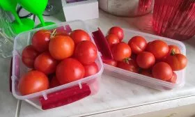 Собранные бурые томаты отлично дозариваются в домашних условиях. Для этого их нужно разложить в один слой в картонных коробках или на полках в сухом, теплом (оптимально +20…+25 °C) и темном помещении. Рядом можно положить несколько полностью красных плодов или спелое яблоко — они выделяют этилен, ускоряющий созревание остальных. В таких условиях помидоры достигают полной спелости за 5-7 дней.