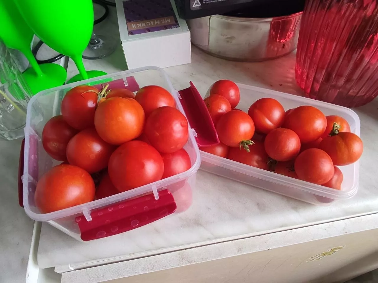 Перед закладкой томаты не моют, чтобы не повредить естественный защитный слой на кожице. Для хранения используют неглубокие ящики из пластика или дерева, обеспечивающие циркуляцию воздуха. Плоды укладывают в один, максимум два слоя, плодоножками вверх.