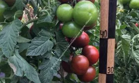 Для этого оставляют один самый сильный пасынок, расположенный непосредственно под первой цветочной кистью. Второй стебель можно сформировать из пасынка ниже. Все остальные боковые побеги удаляют, когда они достигнут длины 3-5 см. Несмотря на детерминантный рост, подвязка к опоре обязательна, так как под весом многочисленных плодов, масса которых в среднем составляет 75-85 граммов, кисти будут склоняться к земле.