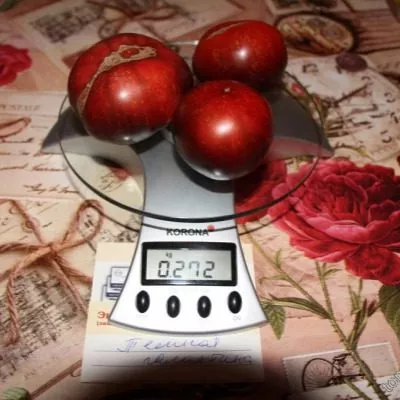 Плоды округлой, иногда слегка приплюснутой формы, с гладкой и плотной кожицей. Средняя масса варьируется от 60 до 110 граммов, что делает их удобными для цельноплодного консервирования и употребления в свежем виде. Мякоть сочная, мясистая, с хорошо выраженными семенными камерами.