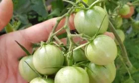 В технической спелости плоды зеленые с характерным темно-зеленым пятном у плодоножки. Мякоть полностью созревшего томата плотная, сочная, насыщенно-красного цвета. Прочная, но не толстая кожица надежно защищает плод от растрескивания, что критически важно для консервации и транспортировки.