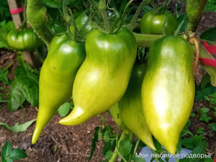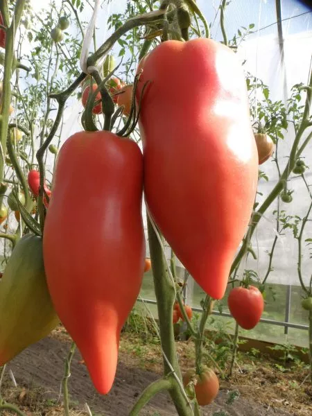 Плоды этого сорта действительно являются его визитной карточкой, и их форма служит главным опознавательным признаком. Удлиненная, перцевидная, с характерным длинным и часто изогнутым носиком на конце — именно так выглядит типичный помидор Тещин язык. Эта особенность не только делает его узнаваемым, но и напрямую связана с его потребительскими качествами.