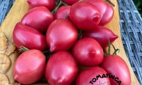 Именно плоды – визитная карточка этого сорта. Их форма соответствует заявленной сердцевидной, часто с хорошо выраженным острым «носиком» у вершины, что придает томатам особенно нарядный вид. В стадии полной, биологической зрелости кожица и мякоть приобретают равномерный, насыщенный розово-малиновый оттенок без зеленого пятна у плодоножки.