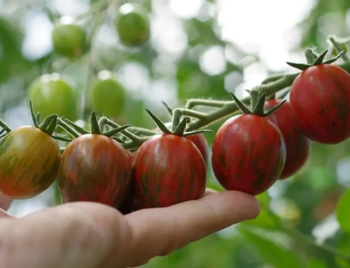 | Томат Тигровый коктейль F1 | Индетерминантный | Ультраранний | Красный с темно-зелеными полосами | Уникальная окраска и ранний урожай |