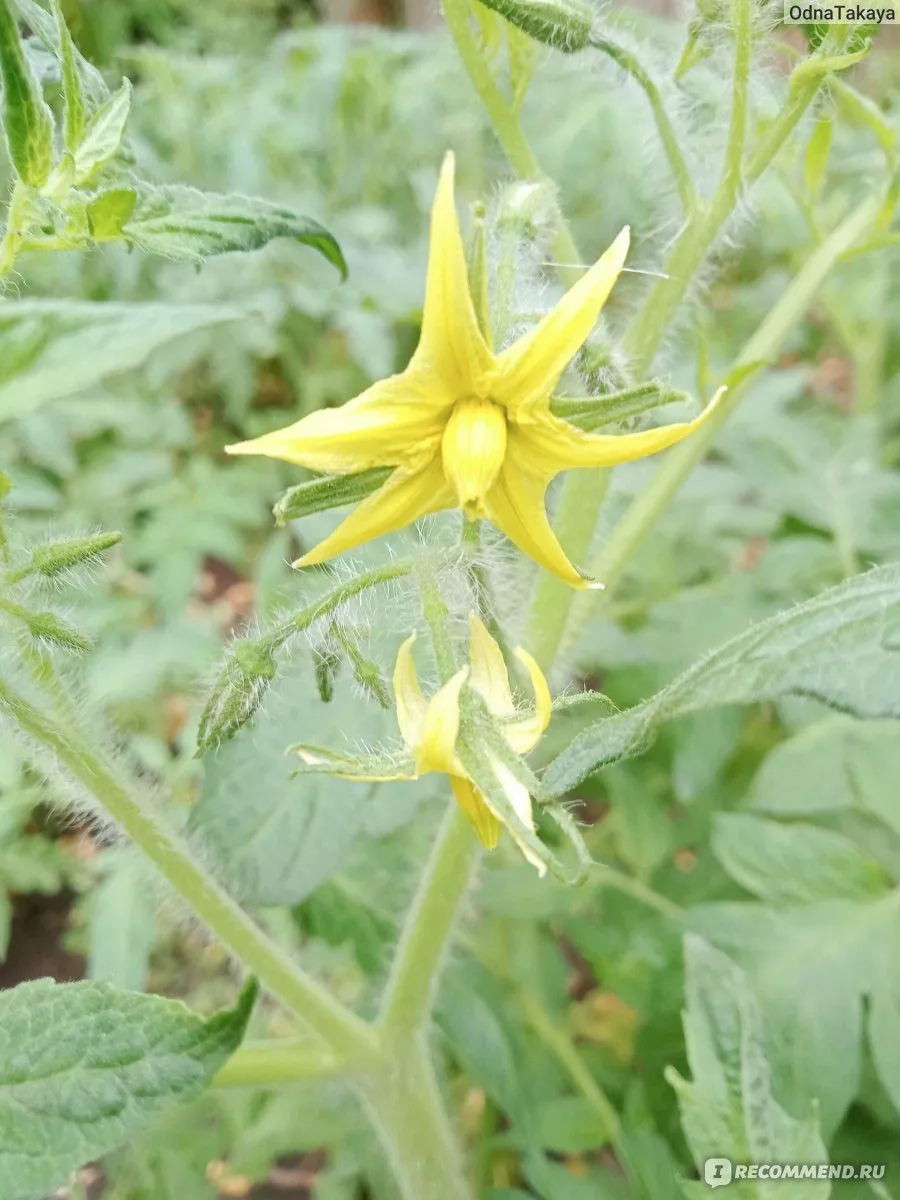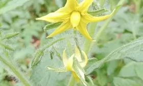Первое простое соцветие у томата Титан закладывается довольно низко – после 6-7-го листа. Каждое последующее формируется через один или два листа. После развития 4-5 плодовых кистей главный стебель завершает свой рост цветочной кистью, что характерно для детерминантных сортов.