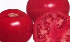 Плоды имеют классическую плоскоокруглую форму, слегка приплюснутую у полюсов. Такая форма не только узнаваема, но и практична: плоды устойчиво лежат на поверхности при нарезке. В фазе полной биологической спелости кожица и мякоть приобретают равномерный, интенсивный красный цвет без зеленого пятна у плодоножки.