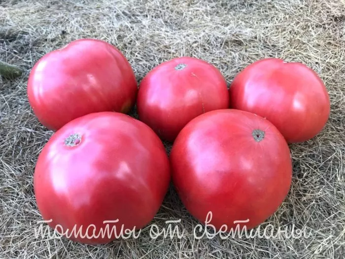 Главная отличительная черта этих томатов — их выдающиеся размеры и характерная форма. Масса плодов соответствует заявленным характеристикам и в стандартных условиях составляет 300-700 граммов. Однако потенциал сорта позволяет получать и более крупные экземпляры.