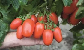 Плоды выровненные, массой 60-80 граммов, с плотной, но не грубой кожицей насыщенного красного цвета. Благодаря одинаковому размеру и форме, кисти смотрятся очень декоративно. Плотная мякоть с малым количеством семян и крепкая кожица обеспечивают отличную транспортабельность и тот самый привлекательный товарный вид.