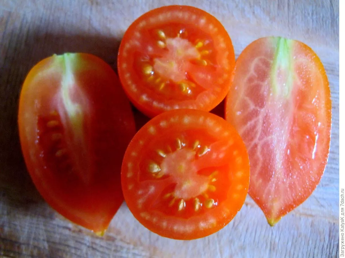 Плотная, мясистая внутренняя структура плода с минимальным количеством семенных камер является еще одной отличительной чертой. Именно такая консистенция делает эти томаты идеальным сырьем для вяления, приготовления густых соусов, паст и, конечно, цельноплодного консервирования, где они сохраняют свою форму и не развариваются.
