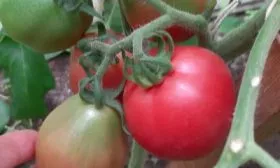 В состоянии технической спелости у основания может сохраняться темно-зеленое пятно, которое полностью исчезает при достижении полной биологической зрелости. Зрелые томаты приобретают насыщенный, равномерный малиново-розовый цвет без зеленых плечиков.