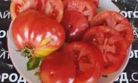 Кожица у плодов плотная, но не грубая, с характерным глянцевым блеском. Средняя масса одного томата составляет 100-120 граммов. Мякоть очень мясистая, плотная и сахаристая на изломе, с небольшим количеством семян и семенных камер.