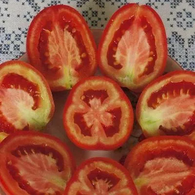 Плоды этого сорта обладают узнаваемой, почти эталонной для засолочных томатов формой — яйцевидной, гладкой и выровненной. Такая конфигурация не случайна: она обеспечивает компактную укладку в банку и равномерный прогрев при консервации. Поверхность глянцевая, без ребристости.