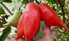 Основной целью при создании гибрида было получение плода с плотной, мясистой консистенцией и минимальным количеством семян, что критически важно для вяления и производства густых соусов. Для этого были использованы родительские линии, несущие гены, ответственные за вытянутую форму и высокое содержание сухих веществ в мякоти.