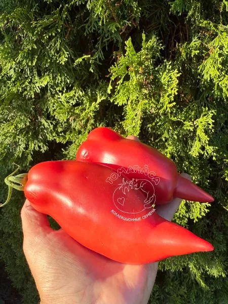 Внешний вид «сливки с носиком» является отсылкой к старинным сортам, но здесь он сочетается не с водянистой, а с очень плотной структурой, более характерной для крупноплодных биф-томатов. Насыщенный розовый цвет был выбран не только для привлекательности, но и как маркер высокого содержания ликопина — ценного антиоксиданта.