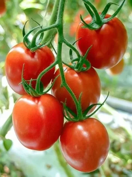 Плоды формируются кистями и имеют ярко выраженную удлиненно-сливовидную форму с характерным небольшим носиком на вершине. Эта форма не только эстетична, но и крайне практична. В стадии технической спелости окраска светло-зеленая, равномерная, без темного пятна у плодоножки. При полном созревании томаты приобретают насыщенный красный цвет.