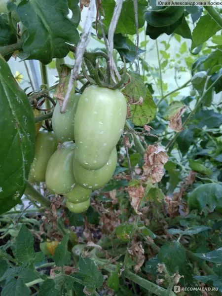 Плоды имеют эллиптическую (овальную) форму и среднюю массу от 60 до 89 граммов. Такая выровненная форма и размер делают их идеальным сырьем для механизированной уборки и промышленной переработки на сок, пасту или кетчуп. Плотная кожица и мясистая консистенция обеспечивают хорошую транспортабельность и лежкость собранных томатов.