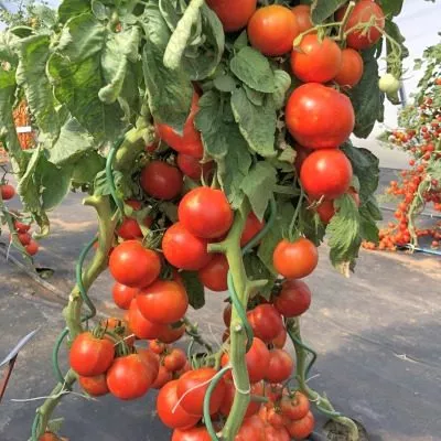 Первая цветочная кисть закладывается высоко – после 8-9-го настоящего листа. Каждая последующая кисть формируется через 2-3 листа. При выращивании в защищенном грунте куст легко достигает высоты 180-220 см, упираясь в потолок стандартной теплицы, что требует своевременного прищипывания точки роста.