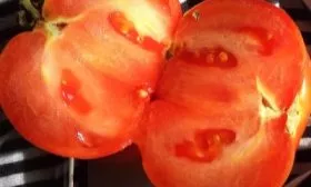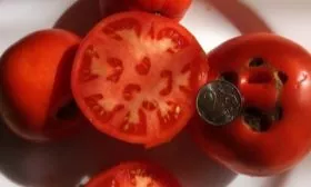 Округлые, ярко-красные плоды массой около 112 граммов имеют сбалансированный вкус. Их плотная, но не грубая кожица надежно защищает от растрескивания как на кусте при перепадах влажности, так и при термической обработке. Это избавляет от необходимости сажать отдельно салатные и отдельно засолочные сорта.