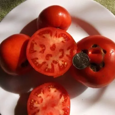 Округлые, ярко-красные плоды массой около 112 граммов имеют сбалансированный вкус. Их плотная, но не грубая кожица надежно защищает от растрескивания как на кусте при перепадах влажности, так и при термической обработке. Это избавляет от необходимости сажать отдельно салатные и отдельно засолочные сорта.