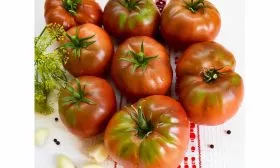 - В свежем виде. Здесь сорт раскрывается полностью. Он прекрасен в нарезке для салатов, бутербродов и овощных тарелок. Плотная мякоть не растекается, сохраняет форму. Вишнево-коричневый цвет и уникальный вкус делают любое блюдо визуально и гастрономически интересным.
