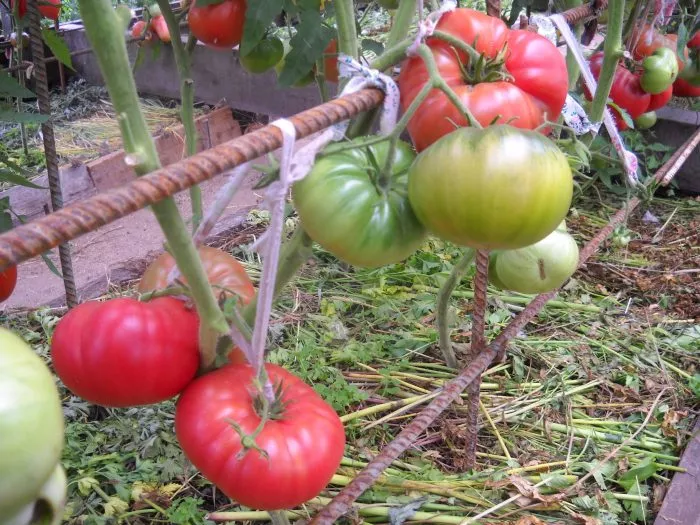 Подвязка — обязательная процедура. Надежно фиксируют не только главный стебель, но и каждую плодовую кисть. Под весом плодов массой 400-600 граммов цветоносы могут легко обломаться. Для подвязки используют мягкие материалы, не травмирующие растение.
