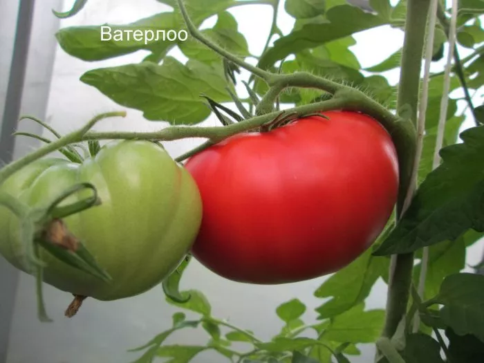 Кисти у сорта Ватерлоо формируются через каждые 2-3 листа. Из-за большой массы плодов, особенно в первой кисти, цветоносы нуждаются в дополнительной поддержке. Их также аккуратно подвязывают к основной опоре, чтобы избежать обламывания под тяжестью урожая.