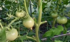 - Несмотря на низкорослость, подвязка центрального стебля к небольшому колышку желательна. Ее проводят, когда начинают наливаться плоды на нижних кистях, чтобы они не лежали на земле и не поражались гнилями.