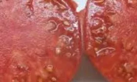 Окрас в технической спелости – равномерный зеленый, без темного пятна у плодоножки. При полном созревании кожица и мякоть приобретают насыщенный розовый цвет. Мякоть отличается высокой плотностью и мясистостью, количество семенных камер и семян невелико. Такая структура обеспечивает не только отличные вкусовые качества для свежего потребления, но и высокий выход продукции при переработке на пасту или сок, так как содержание сухих веществ повышенное.