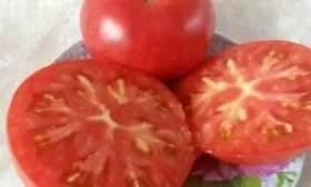 Плоды — главная гордость сорта. Их форма описывается как плоскоокруглая, с часто выраженной ребристостью в области плодоножки. В состоянии биологической (полной) зрелости томаты приобретают насыщенный малиновый цвет, что отличает их от многих классических красноплодных сортов.