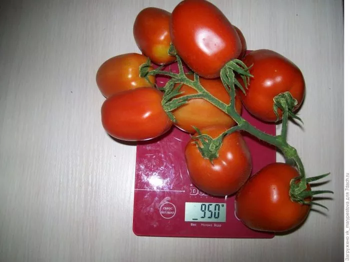 Кисти у гибрида обычно простые (неразветвленные), что облегчает сбор урожая. Количество завязей от 5 до 7 штук на каждой кисти способствует формированию компактных, аккуратных гроздей. Благодаря сочетанию формы, плотности и размера, помидоры этого сорта демонстрируют высокую транспортабельность и отличный товарный вид.
