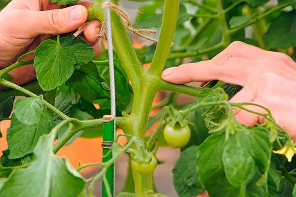 Для подвязывания лучше всего применять мягкую ткань, которая не повредит стебель. Некоторые огородники предпочитают крепить стебли к горизонтальному бруску, что тоже обеспечивает равномерное освещение и правильное развитие кустов. - Ключевое требование к раннеспелым гибридам заключается в регулярной переориентации роста куста от центрального стебля к боковым. Прищипку обычно проводят над четвёртым соцветием, оставляя в этой зоне пару листьев для защиты плодов от ожогов и обесцвечивания.