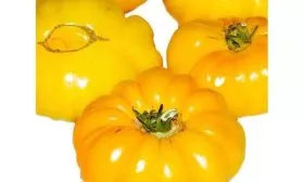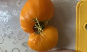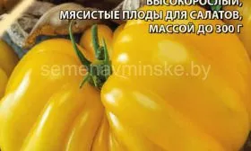 Полное созревание сопровождается изменением окраски на насыщенный желтый цвет. Мякоть у зрелых томатов плотная, мясистая, с несколькими семенными камерами, содержащими небольшое количество семян. Плотная, но не жесткая кожица является сортовой особенностью, которая минимизирует риск растрескивания крупных плодов, особенно при неравномерном поливе.