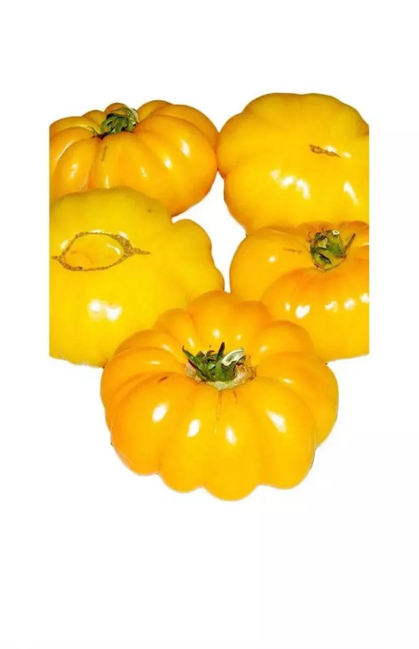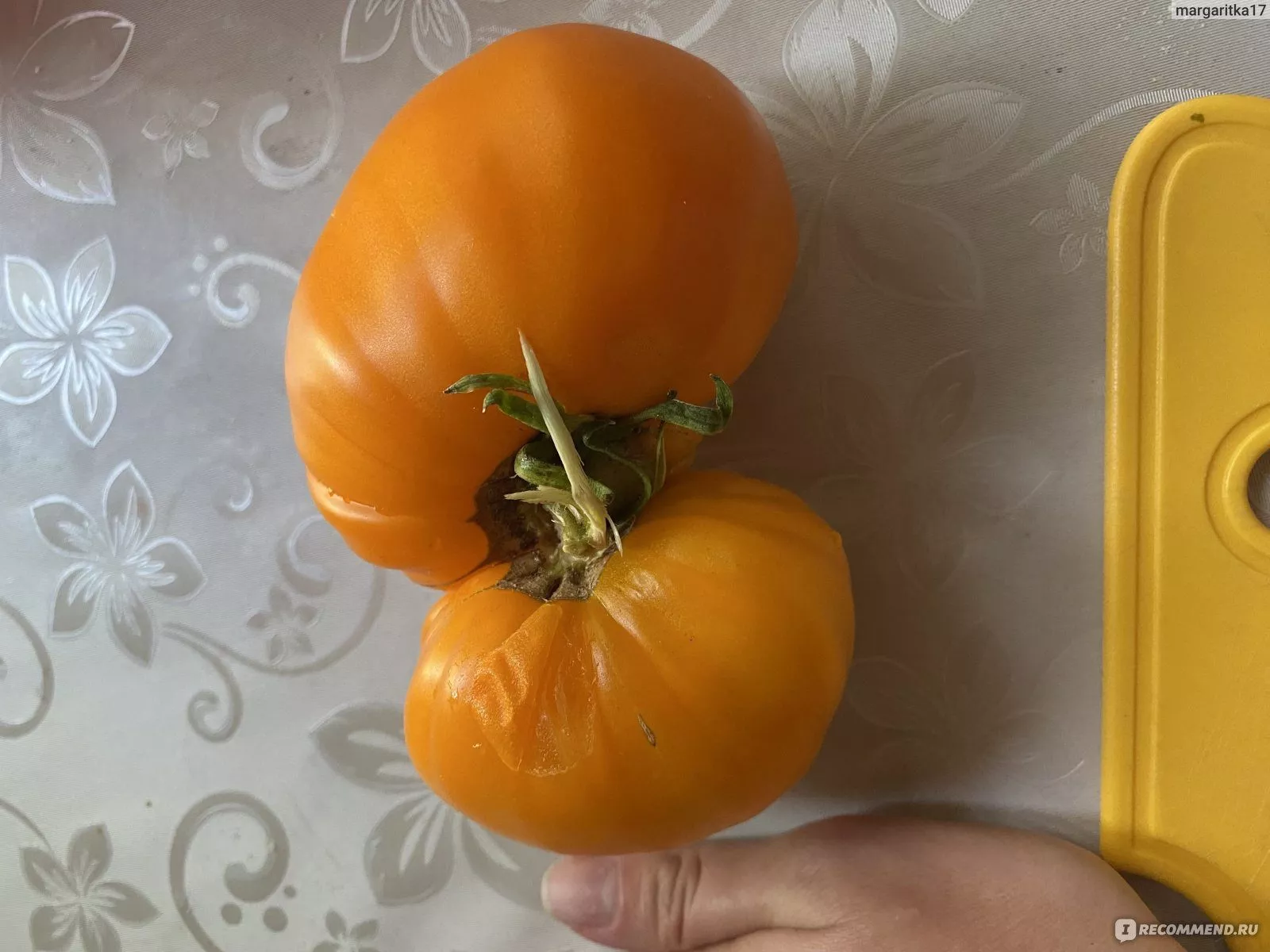 Полное созревание сопровождается изменением окраски на насыщенный желтый цвет. Мякоть у зрелых томатов плотная, мясистая, с несколькими семенными камерами, содержащими небольшое количество семян. Плотная, но не жесткая кожица является сортовой особенностью, которая минимизирует риск растрескивания крупных плодов, особенно при неравномерном поливе.
