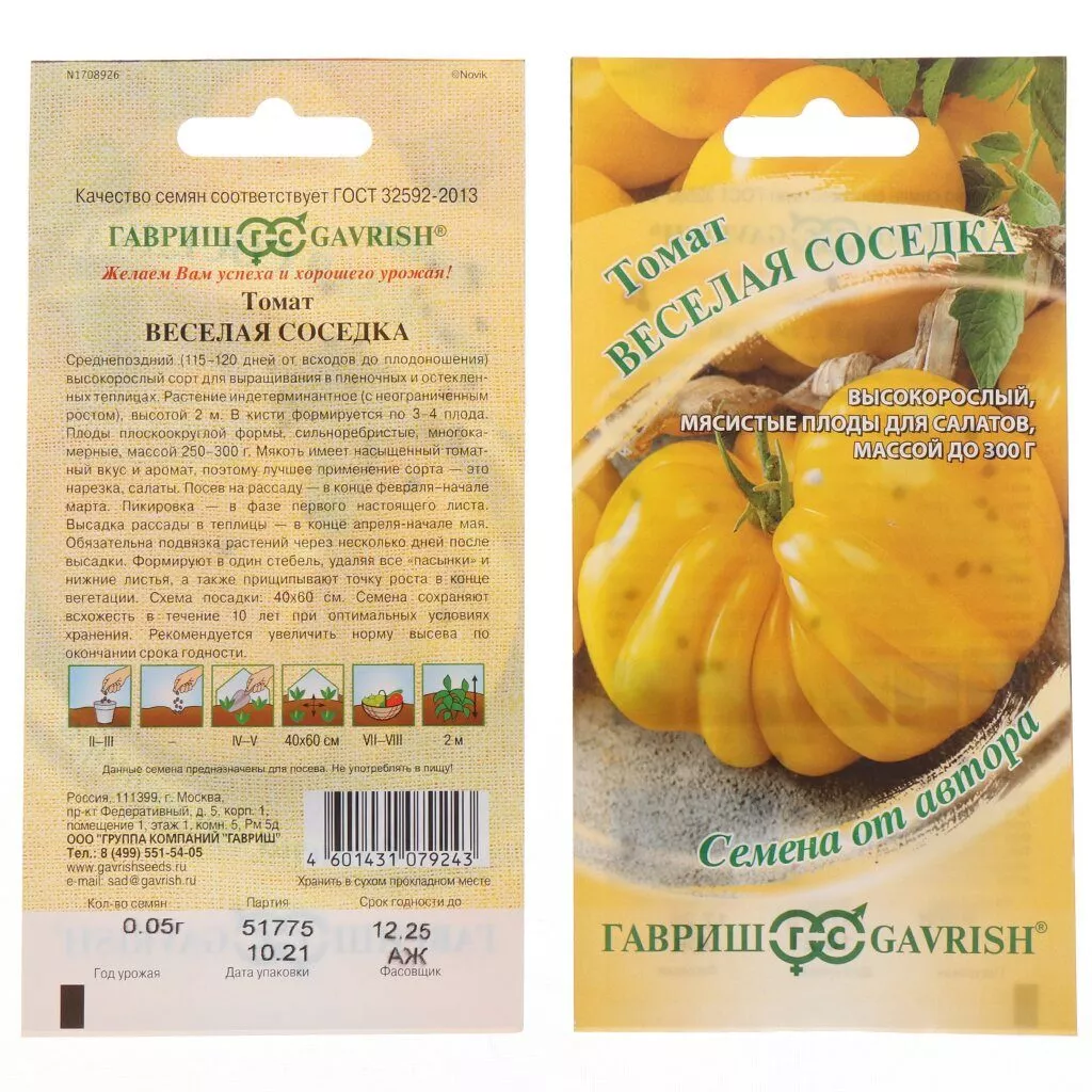 Веселая соседка относится к категории сортов, а не гибридов (F1). Это важное агротехническое отличие означает, что с него можно самостоятельно заготавливать семена. Посевной материал, полученный из плодов, будет полностью воспроизводить родительские признаки: тип роста, массу, форму и окраску плодов в последующих поколениях.