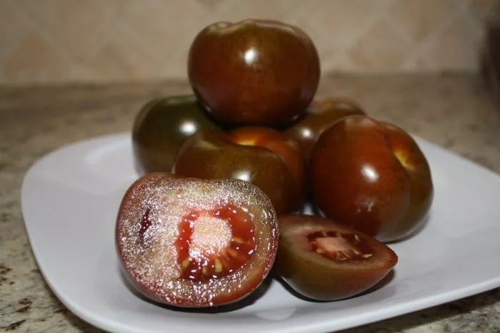 Собранные в стадии технической спелости бурые плоды успешно дозариваются в помещении. При этом важно учитывать, что полностью созревшие томаты, достигшие своего фирменного буро-коричневого цвета, имеют стандартный для салатных сортов срок хранения и предназначены для быстрого употребления.