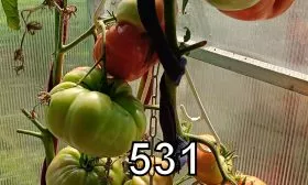 Форма плодов плоскоокруглая, нередко с заметной ребристостью в области плодоножки. Эта ребристость особенно выражена у самых крупных томатов, придавая им характерный «бочкообразный» вид.