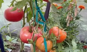 - Подвязка кистей. Это обязательная операция для данного сорта. Используют широкие ленты или мягкий шпагат, чтобы не пережимать плодоножку. Подвязывают каждую кисть отдельно, как только на ней завяжутся плоды, иначе под их весом она может обломиться.