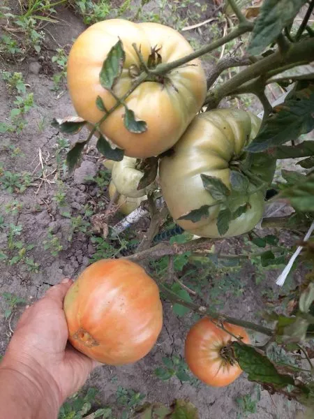 Истинная уникальность сорта раскрывается в фазе налива плодов. Их размер является ключевой отличительной чертой. Стандартная масса варьируется в диапазоне 400-1000 граммов, причем на нижних кистях чаще формируются самые крупные экземпляры.