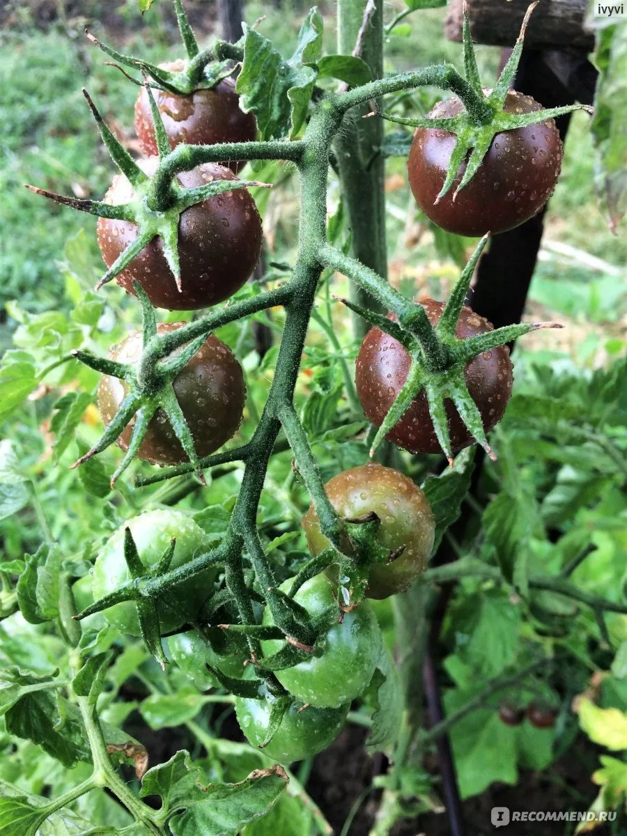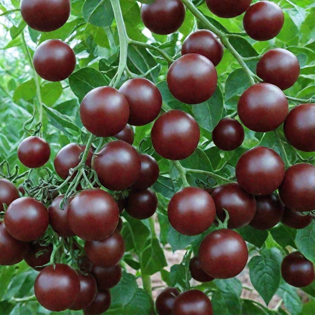 Этот сорт томатов черри завоевал популярность благодаря уникальному внешнему виду плодов. Их окрас, описываемый как красновато-вишневый, является результатом накопления антоцианов — растительных пигментов с антиоксидантными свойствами, которые в такой концентрации редко встречаются у томатов. Именно эта биохимическая особенность определяет не только цвет, но и повышенную питательную ценность плодов.