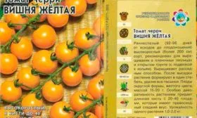 - Вишня жёлтая (гибрид). Принадлежит к раннеспелым видам овощной культуры. Её растения высоки и раскидисты. Томаты на них поспевают через 90 дней после появления всходов. Их отличает миниатюрный размер, продолговатая форма и насыщенный жёлтый окрас.