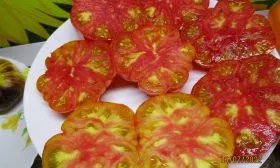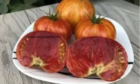 Это означает, что садоводы могут самостоятельно заготавливать семена из выращенных плодов, и в последующих поколениях будут сохраняться все ключевые признаки: индетерминантный тип роста, крупный размер и уникальная жёлто-оранжевая с розовым мрамором окраска, а также сладкий вкус с фруктовым послевкусием.