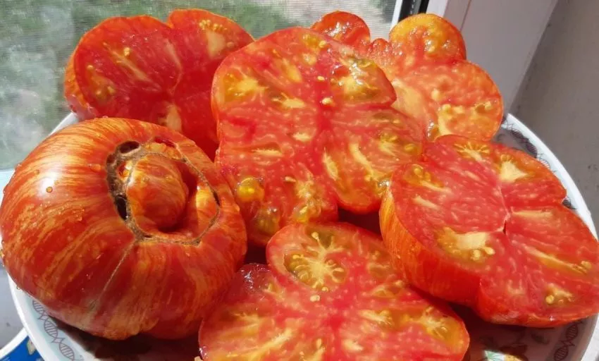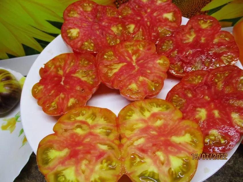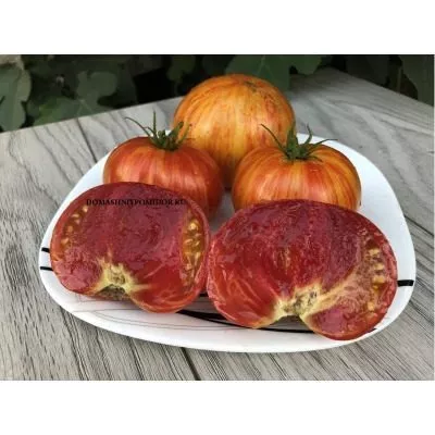 Это означает, что садоводы могут самостоятельно заготавливать семена из выращенных плодов, и в последующих поколениях будут сохраняться все ключевые признаки: индетерминантный тип роста, крупный размер и уникальная жёлто-оранжевая с розовым мрамором окраска, а также сладкий вкус с фруктовым послевкусием.