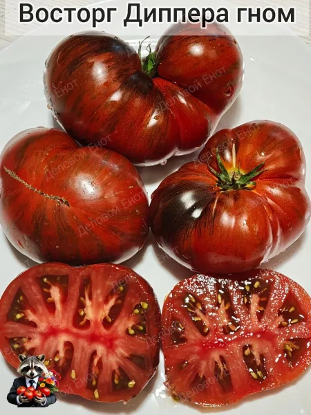 Среди многообразия томатов сорт «Восторг Диппера» выделяется необыкновенной внешностью плодов. Этот среднеспелый детерминантный сорт для открытого грунта дарит высокий урожай крупных, плоскоокруглых помидоров. Их пурпурная кожица с зелёно-фиолетовыми лучами и антоциановым напылением скрывает яркий, сбалансированный вкус. Давайте узнаем, как вырастить эту красоту на своём участке.