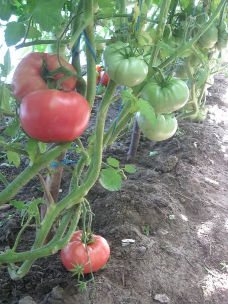 Формируют куст строго в один, реже в два стебля. Все пасынки удаляют регулярно, не давая им перерастать более 5 см. По мере налива плодов на нижних кистях, листья под ними постепенно удаляют для улучшения воздухообмена. Надежная подвязка – обязательное условие. Крепят не только главный стебель к шпалере, но и каждую тяжелую кисть, иначе под весом плодов, достигающих 500 граммов, они просто отломятся.