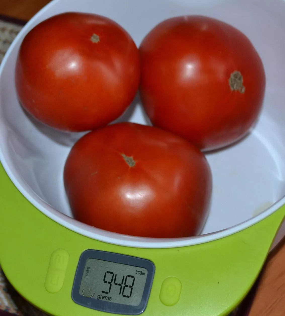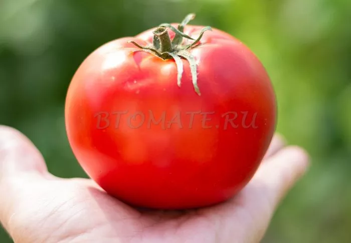 В фазе технической спелости томаты имеют равномерный светло-зеленый окрас без характерного для многих сортов темно-зеленого пятна у плодоножки. По мере созревания они наливаются ровным, насыщенным красным цветом.