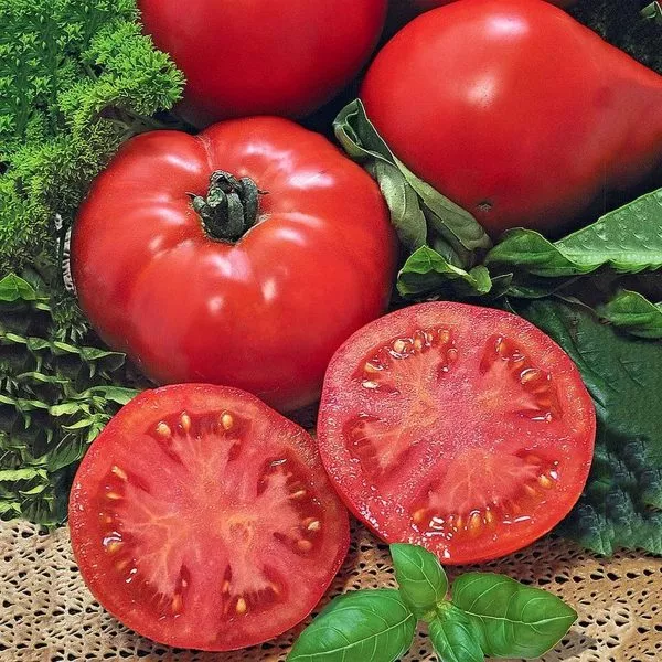 Главная отличительная черта гибрида – форма плодов. Она описывается как плоскоокруглая или приплюснутая, что в агрономической и потребительской практике часто называют «бифштексной». Такие томаты обычно многокамерные (многогнездные), с небольшим количеством семян и значительной долей мякоти.