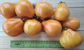 Однако грушевидная форма с плотной кожицей и мякотью открывает и другую возможность. Если требуется транспортировка или длительное хранение, томаты можно снимать в фазе бланжевой спелости, когда только появился первый оранжевый «румянец». Такие плоды успешно дозариваются в теплом помещении, не теряя формы.