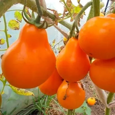 Внешний вид этого томата сложно спутать с каким-либо другим. Его визитная карточка — уникальная форма плода. Плоды грушевидные, с ярко выраженными продольными ребрышками, идущими от плодоножки к низу, что делает их похожими на трюфель или маленькую тыковку. Зрелые плоды имеют насыщенный оранжевый цвет, который говорит о высоком содержании каротиноидов, полезных для зрения.