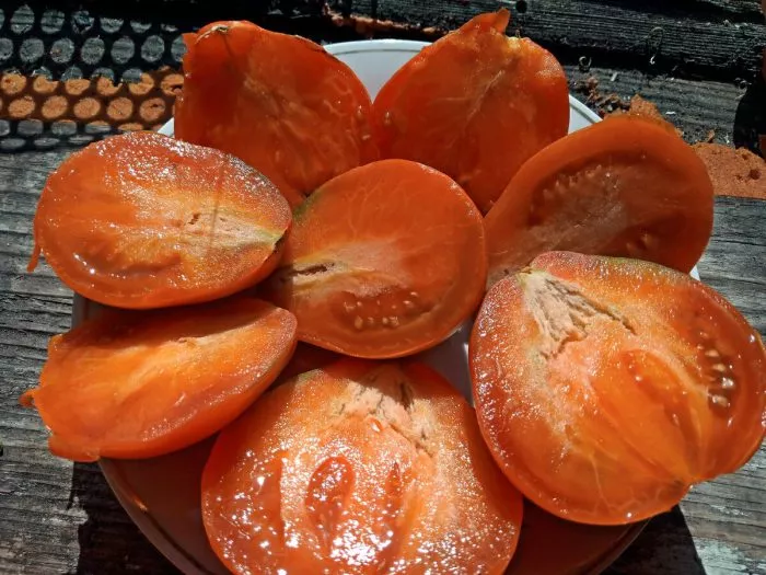 Сок получается необычного золотисто-оранжевого цвета с богатым вкусом. Крупный размер и грушевидная форма не позволяют использовать плоды для классического цельноплодного консервирования. Зато они превосходно подходят для вяления или сушки, где концентрация сладости и вкуса многократно усиливается.