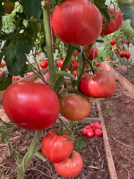 При работе с такими крупными и мясистыми плодами крайне важна аккуратность. Томаты снимают вместе с плодоножкой, аккуратно поворачивая их в сторону от кисти, пока черешок не отделится сам. Нельзя тянуть плод вниз, так как это может привести к повреждению не только кожицы, но и всей кисти.